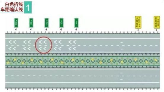 第2種是車(chē)距確認(rèn)線——這種標(biāo)線一般出現(xiàn)較易發(fā)生超車(chē)、易肇事或其他交通隱患多的路段,它由兩列平行的白色粗實(shí)線組成,提醒車(chē)主在高速行車(chē)時(shí)保持安全車(chē)距,配合50/100/150米這樣的距離確認(rèn)牌,為駕駛員提供輔助參考。
